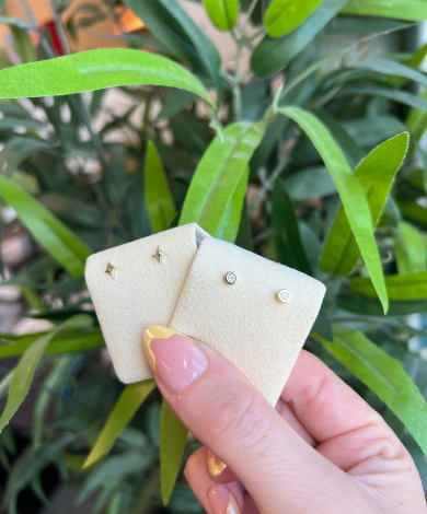If you find push pin earrings a little tricky at first, you’re not alone! They take a bit of practice, and it’s perfectly fine to ask a friend for help. And if you’re putting them in while standing over a bathroom sink, be sure to cover the drain—just in case.