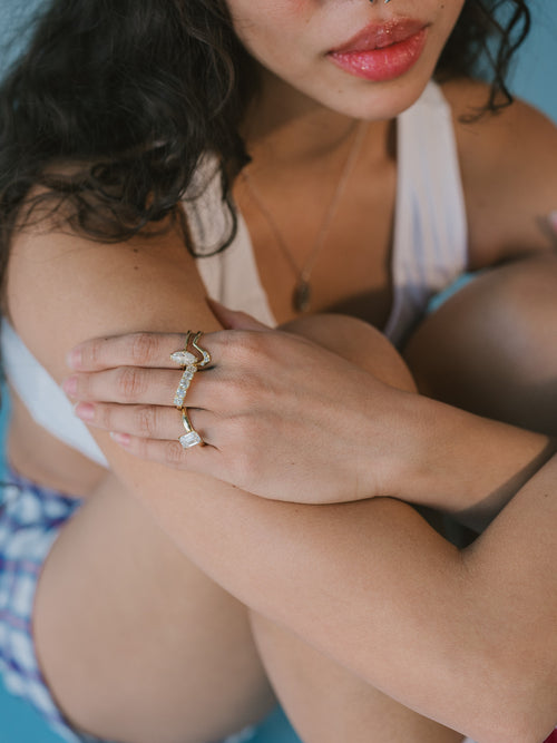 Charlie pear moissanite (top): 10x6mm moissanite