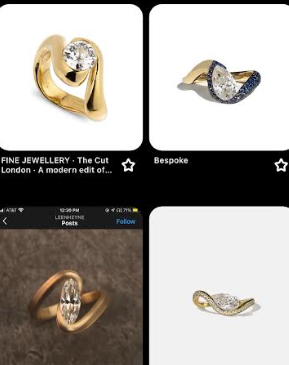 Our clients' Pinterest board showed lots of asymmetry, both in the orientation of the center stone and the curvature of the band.