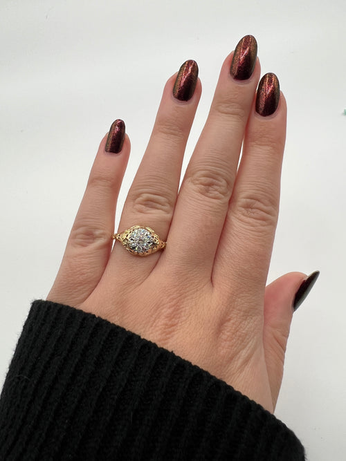 This antique ring was originally made through a hand carving process, and many of the details had worn down over time. This presented us with two interesting challenges. First, we needed to bring an imperfect, handmade feel to a ring designed in CAD, and we also had to imagine what some of the less legible details of the ring once could have been.