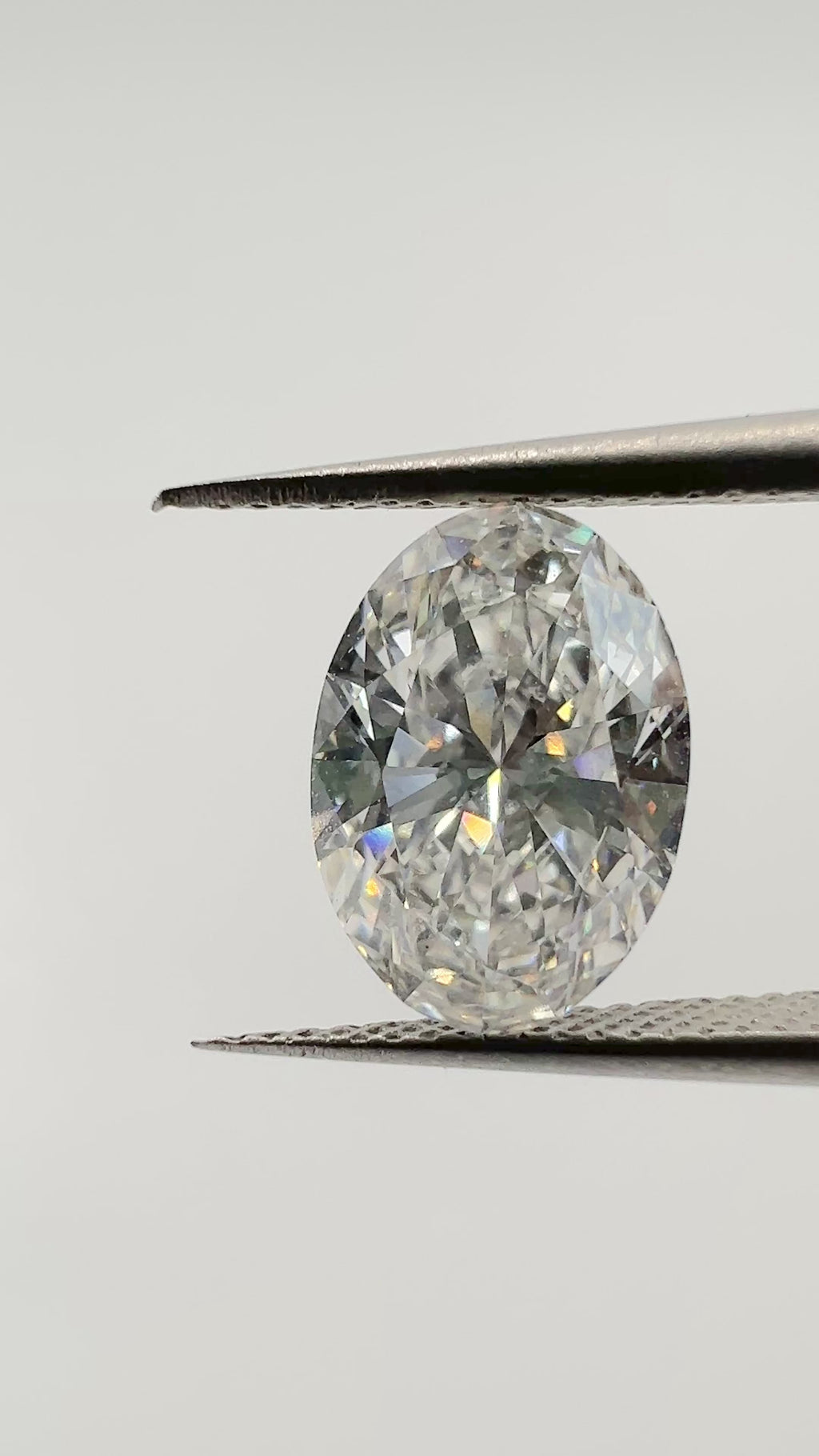This oval brilliant lab grown diamond is 2.26 ct and SCS certified.