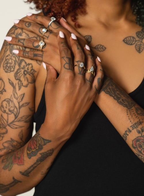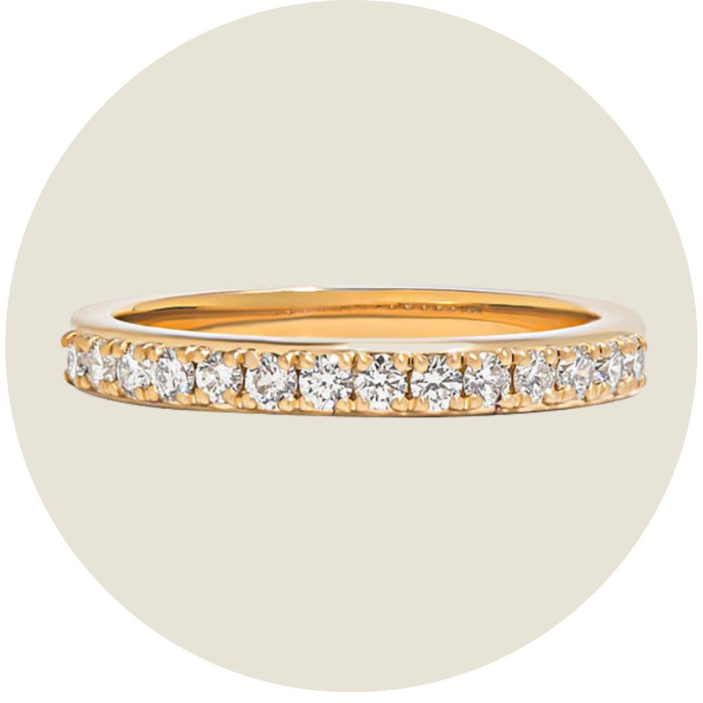 - Rings take a lot of abuse when you wear them daily, so no matter what type of ring you get, we recommend having a local jeweler inspect it every year to make sure everything looks good. This is especially true for pavé - and all prong settings - as those prongs can loosen with regular wear. As far as cleaning goes, we keep it simple with some Dawn dish soap, warm water and a baby toothbrush - just let it soak for a few minutes and gently scrub all the nooks and crannies. If you prefer jewelry cleaner, that works too! Just make sure that the product you’re using is compatible with your ring - some kinds of cleaner can remove the rhodium plating on white gold, for instance.